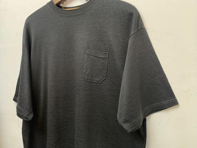 麻70%ほどの珍しいTシャツで、ポケット付きの、ゆとりのあるTeeシャツとなっております。納品時は少々硬めですが、お洗濯を繰り返していくうちに柔らかさが増していきます。