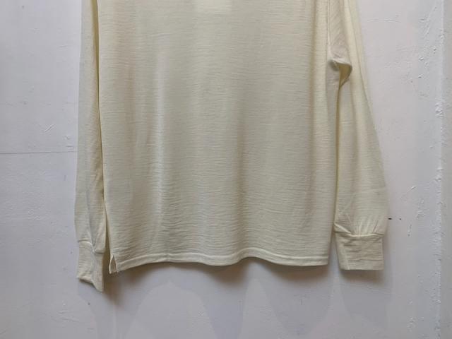 Super 100's (18.5マイクロン)というスーパーファインメリノといわれる極細繊維の素材をジャージー生地用に超極細番手に梳いた梳毛糸を使用して編み上げた、とても豪華なウールインナーカットソーです。ウォッシャブル加工(お洗濯で縮みは少し出ます。)と、毛羽をそぎ落とす加工をしており、ニットウェアでは味わえない贅沢なAWアイテムに仕上がりました。素材感を直接感じて頂くために、肌着としてのご使用をお薦め致します。