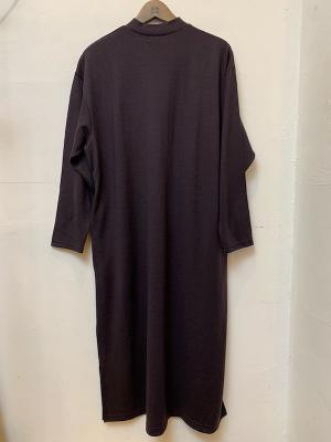 他品番インナートップスに使用されるメリノウールを、生地の肉感を出すことを前提に梳いて、敢えて太番手に紡績し、ウールジャージー生地を編み上げました。とても豪華なウールカットソーワンピースです。ウォッシャブル加工(お洗濯で縮みは少し出ます。)と、毛羽をそぎ落とす加工をしており、ニットウェアでは味わえない贅沢なAWアイテムに仕上がりました。梳毛ウールのため、ウール感が少なく、初春でも気持ちよくご着用頂けるアイテムです。