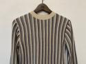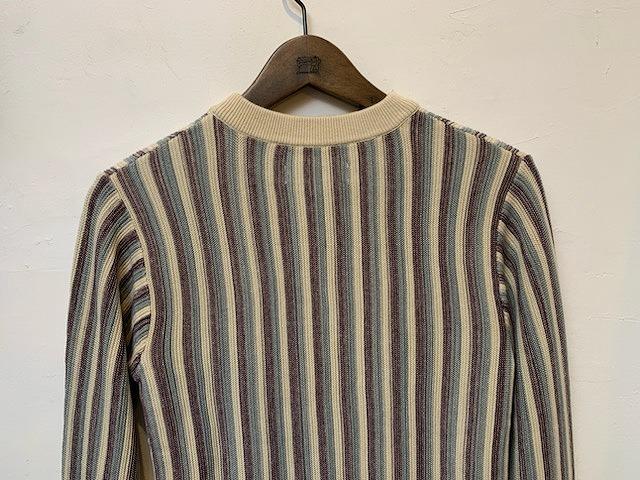 コットンアクリル糸を使用したニットプルオーバー。ニュアンスのあるストライプ柄の表情ときれいな配色が新鮮な一枚です。12ゲージの細い糸を緻密に編み込んでおり、柔らかく滑らかな風合いに仕上がっております。