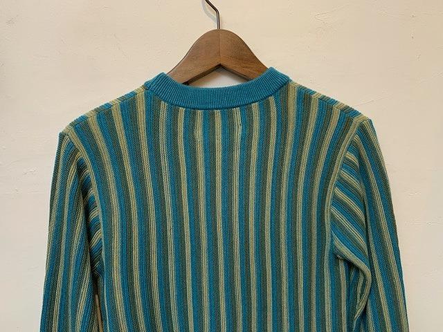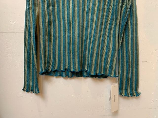 コットンアクリル糸を使用したニットプルオーバー。ニュアンスのあるストライプ柄の表情ときれいな配色が新鮮な一枚です。12ゲージの細い糸を緻密に編み込んでおり、柔らかく滑らかな風合いに仕上がっております。