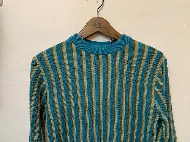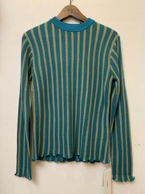 コットンアクリル糸を使用したニットプルオーバー。ニュアンスのあるストライプ柄の表情ときれいな配色が新鮮な一枚です。12ゲージの細い糸を緻密に編み込んでおり、柔らかく滑らかな風合いに仕上がっております。