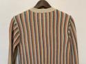 コットンアクリル糸を使用したニットプルオーバー。ニュアンスのあるストライプ柄の表情ときれいな配色が新鮮な一枚です。12ゲージの細い糸を緻密に編み込んでおり、柔らかく滑らかな風合いに仕上がっております。