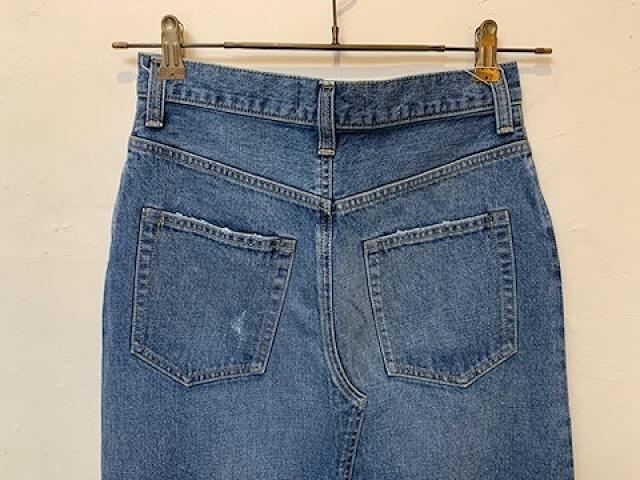 パンツをリメイクしたようなデザインとなっており、少し控えめに施されたダメージ加工がさりげないアクセントになっています。少し長めの丈感とコンパクトなストレートシルエットで、カジュアルながらも上品で大人の女性が穿きやすいアイテムに仕上がっております。
