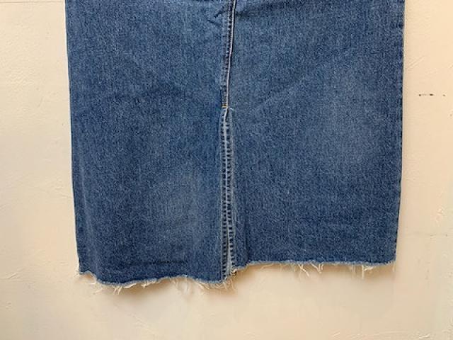 パンツをリメイクしたようなデザインとなっており、少し控えめに施されたダメージ加工がさりげないアクセントになっています。少し長めの丈感とコンパクトなストレートシルエットで、カジュアルながらも上品で大人の女性が穿きやすいアイテムに仕上がっております。