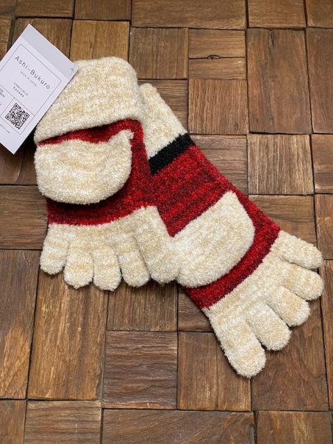 5本指の暖かソックスです。糸の染色の段階でカモミール成分とカプサイシン(唐辛子)を練り込んでいます。それにより、履いてすぐに暖かさが足全体を包みます。
