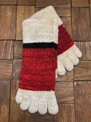 5本指の暖かソックスです。糸の染色の段階でカモミール成分とカプサイシン(唐辛子)を練り込んでいます。それにより、履いてすぐに暖かさが足全体を包みます。