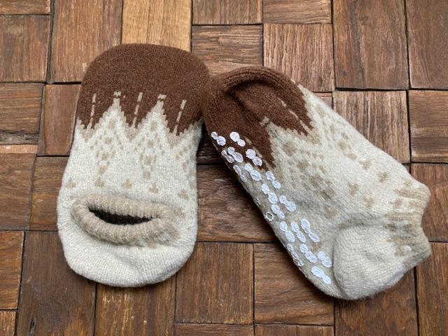 手袋のように暖かいルームシューズです。足にぴったりフィットする二重編みの立体構造。伸縮性に優れ、嫌な締め付け感がありません。19cmから27cmまで対応している男女フリーサイズで、お子様ともお揃いで履けます。製造は手袋生産日本一の香川県の織り機を使用し、糸も日本製の物を使用しています。