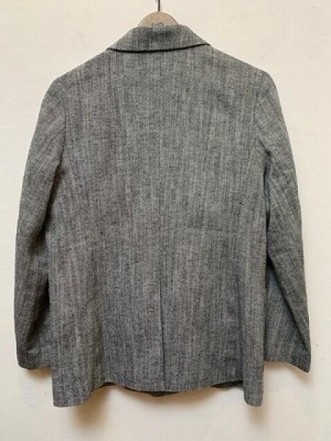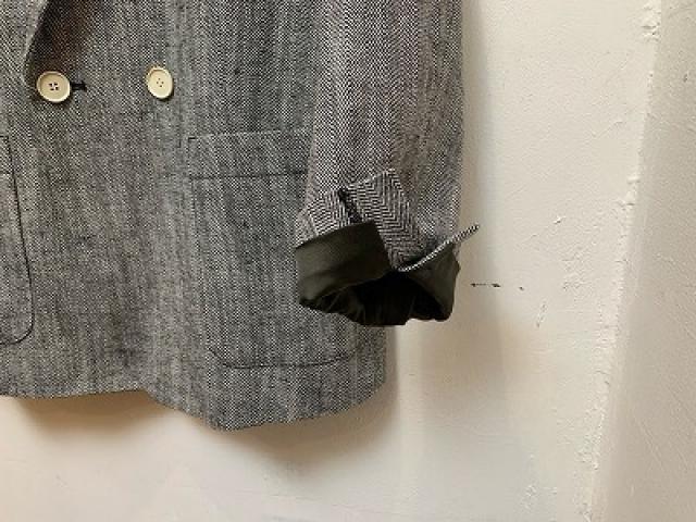 コットンリネンのヘリンボーン生地を使用したジャケット。天然繊維の自然な特性を活かした粗野感のある風合いで、クールな雰囲気に仕上げております。ダブルブレストの前立てで一見かっちりした印象ですが、ゆったりとしたサイズ感、前立てのボタンは上下2段のみにして抜け感をプラス。