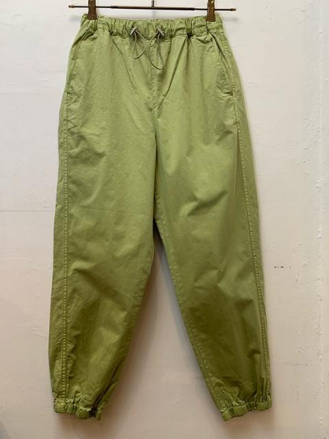 ハリがありながらも薄手のシャツ地のような生地を使用したイージーパンツ。ゴム仕様のウエストは履き心地抜群で、様々なアイテムに合わせやすいシルエットです。紐についた金属のストッパーがポイントでサイズ調整も可能です。