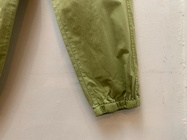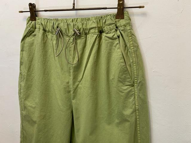 ハリがありながらも薄手のシャツ地のような生地を使用したイージーパンツ。ゴム仕様のウエストは履き心地抜群で、様々なアイテムに合わせやすいシルエットです。紐についた金属のストッパーがポイントでサイズ調整も可能です。