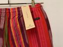 マルチカラーのストライプショートパンツです。赤をベースにした遊び心満載のカラーリングが目を惹きます。個性を引き出し、存在感のあるアイテムです。ウエストはゴムと紐の仕様なのでリラックスして履き続ける事が可能です。