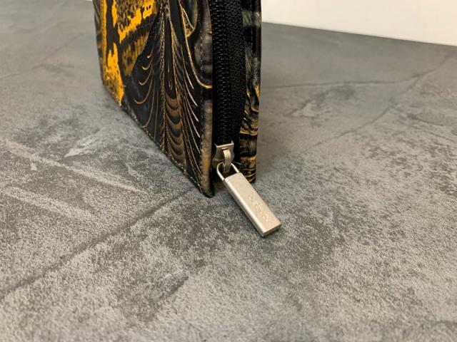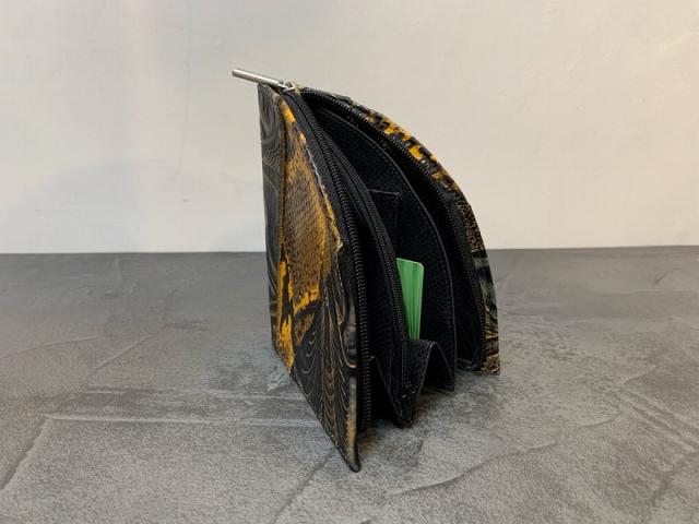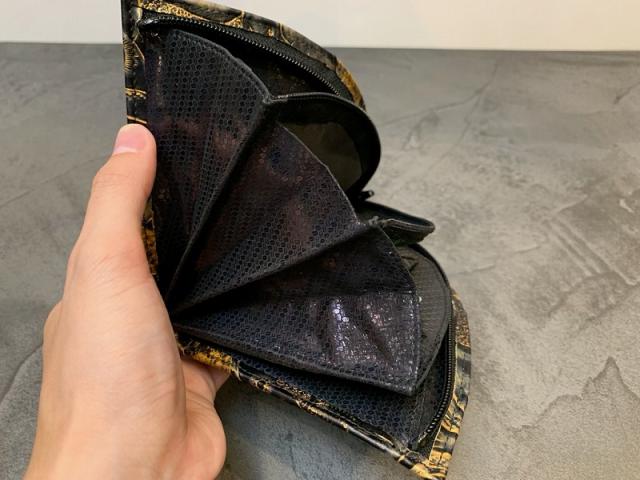 他にはない特別感を味わえる、扇子型が特徴のDequaのお財布。その名も「クレープ」という名前の通り、クレープのような形をした個性的なフォルム。クラッチバッグを持っているような存在感があります。