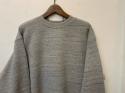 トンプキン裏毛とは、糸に負荷をかけずにゆっくり時間をかけて編まれたもので、やわらかくふっくらとした手触りが特徴です。今回はさらに目を詰めてボリューム感を出しています。リブは針抜きに編み立てて、縫製後ピグメント加工をすることで古着のような味のある仕上がりに。