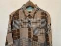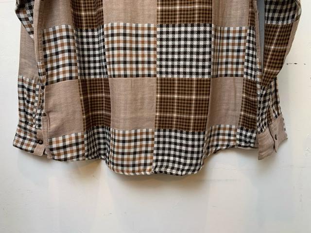 楽しいデザインのパッチワークシャツ。パッチワークはチェック生地を中心に組み立てられ、優しい色味ですがコーディネートのアクセントになります。ポケット付きでちょっぴり長め、男性はもちろん女性にも。