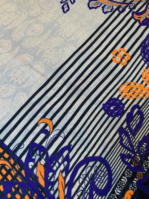 ペイズリーと唐草をミックスし、生命力を感じさせる柄いきに。日本では勾玉模様といわれるペイズリーは生命力の意味が込められた伝統的な柄です。そんなペイズリーと子孫繁栄や長寿の意味を持つ、日本の伝統模様唐草を融合。初期のKusaKanmuriの雰囲気を感じさせる1枚です。