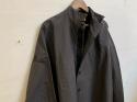 最大の特徴は、その独創的なパターンワーク。かなり広めに取った身幅、着物スリーブを思わせる変形的な形状の袖、スタンドカラーと通常のシャツカラーの中間のような、ウィングカラーにも似た襟など、細部にまでこだわり抜いたディテールが光ります。ヨーク下と下前に施されたテープもさりげないアクセントに。
