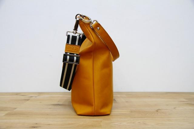 イタリアの上質なレザーと、美しいカラーで伸縮性のあるショルダーストラップが象徴的な、ELENA LERAのショルダーバッグです。