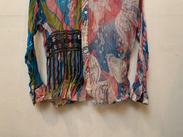ストール柄を使用し、シャツに仕立てました。 シルクコットンの上品な素材感をそのままお楽しみください。