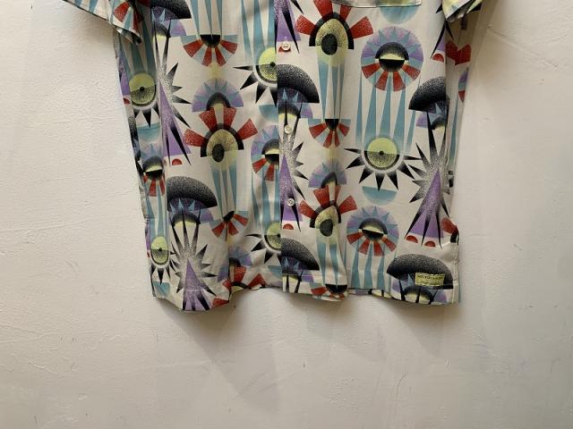 ツルっと光沢のある素材を使用した半袖開襟シャツ。不思議で芸術的、そして個性的なデザインが、夏のコーディネートの格を上げてくれます。