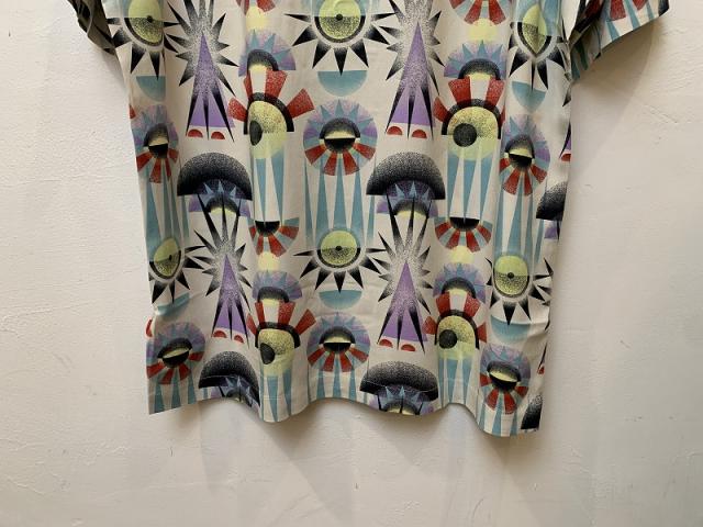 ツルっと光沢のある素材を使用した半袖開襟シャツ。不思議で芸術的、そして個性的なデザインが、夏のコーディネートの格を上げてくれます。