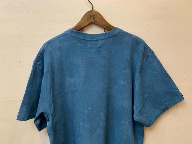 1点1点、丁寧に染め上げることで生まれる、奥行きのあるムラ感が唯一無二の存在感を放ちます。大量生産では決して味わえない、時間と手間ひまをかけて生み出された、こだわりの1枚をぜひ体感してください。フロントにさりげなくメッセージプリントが施してあります。