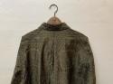 伝統的なバンダナ柄に立体的な織り模様を重ねることで、クラシカルな中にも新鮮さが宿る、まさに現代的な解釈が実現できたと感じています。デザインの核となるのは、あえてボタンを省いた大胆な前開きスタイル。肩線を後ろへと流すことで生まれる丸みのあるショルダーラインは、着る人の体の線と自然に調和するよう考え抜かれています。
