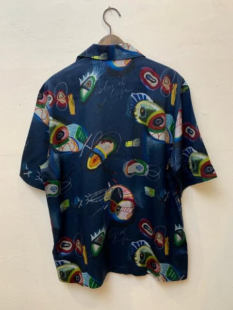 ツルっと光沢のある素材を使用した半袖開襟シャツ。まるで夢の中のような個性的なデザインは、夏のコーディネートの格を上げてくれます。