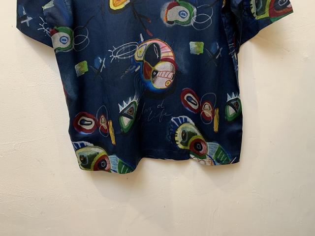 ツルっと光沢のある素材を使用した半袖開襟シャツ。まるで夢の中のような個性的なデザインは、夏のコーディネートの格を上げてくれます。