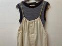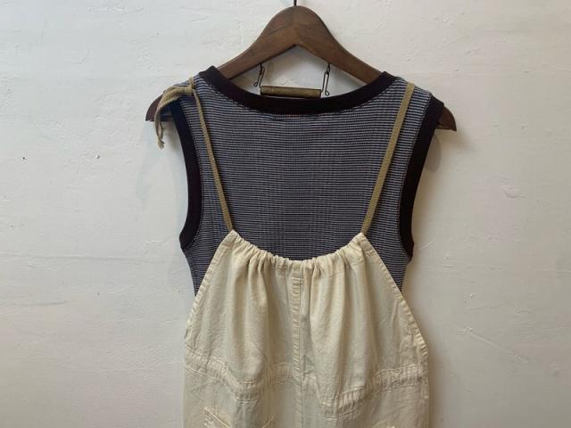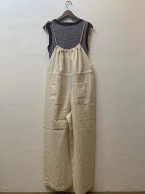 ドローストリングサロペット。キャミソールタイプで、着用した時に肩紐の間の生地が寄ってギャザーになるデザインです。バストから裾までゆったりしたストレスフリーな着心地で、Tシャツと合わせるだけで簡単に夏の装いをお楽しみいただけます。