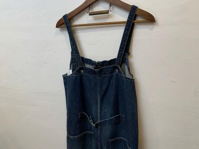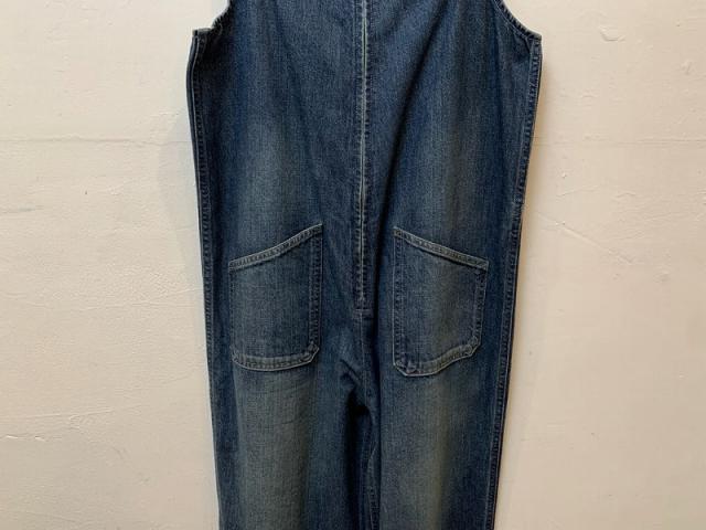 U.S.NAVYのデッキパンツをベースにしたデニムチューブサロペット。ストンと落ちる太めのシルエットですが、後ろウエストのベルトを絞るとウエストシェイプされてすっきりと着ていただく事も可能です。また、前立てのファスナーの上を少し開くことで、こなれ感のあるスタイルもお楽しみいただけます。