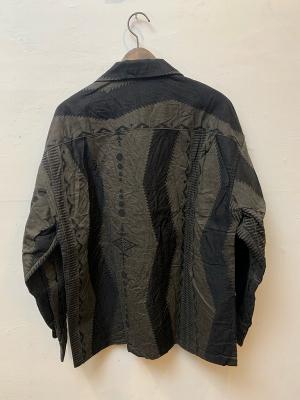 特筆すべきは、素材そのものが持つ圧倒的な存在感。この迫力ある素材を最大限に活かすため、デザインはあえてミニマムに抑え、素材本来の魅力を前面に押し出す絶妙なバランスを実現しています。シンプルながらも身幅をしっかりと確保したリラックス感のあるシルエットは、素材の個性を引き立てつつ、着る人を選ばない普遍的な魅力を持ち合わせています。