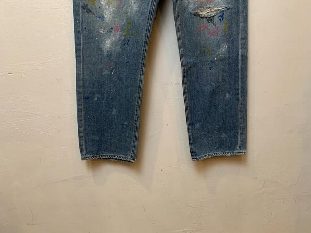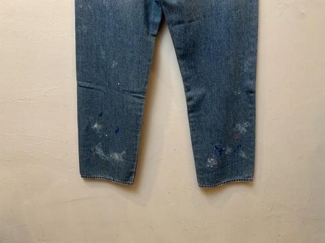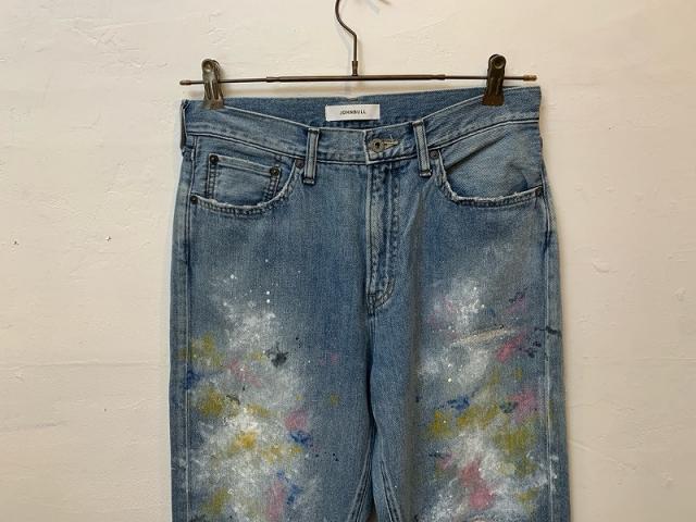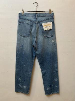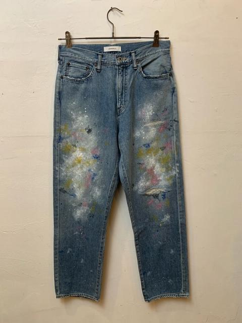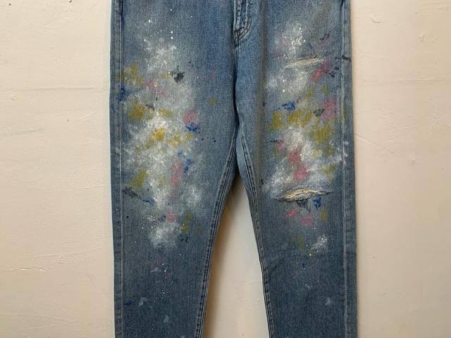 ややテーパードの効いたシルエットで、すっきりと履きやすいシルエットです。ダメージ加工やペイントを駆使して、古着にはない独特の雰囲気を表現。