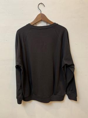 袖はゆったりしたラグランスリーブで、裾の後ろ側はリブ&タックが入ったラウンドシルエット。ヒップが程よく隠れる着丈でリラクシーな着心地なのに、一枚で様になるアイテムです。