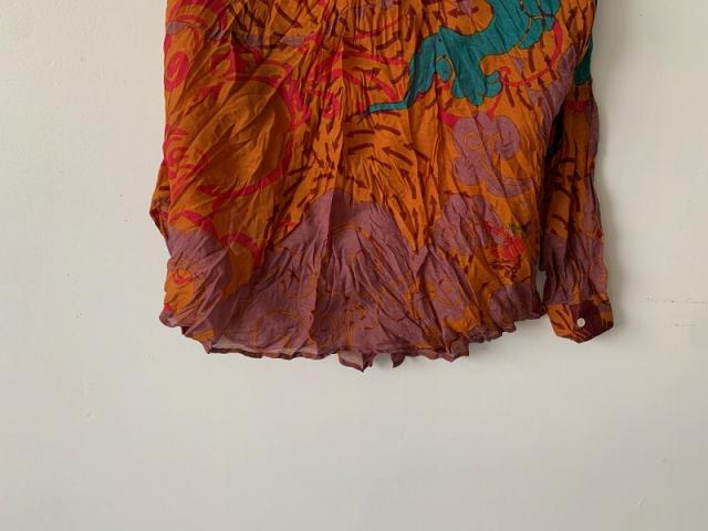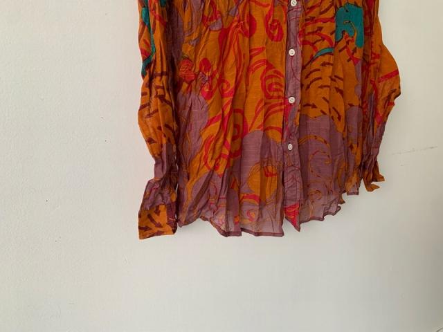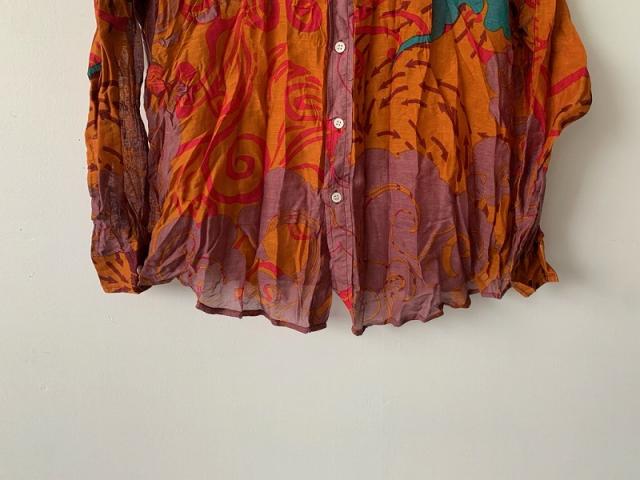 ストール柄を使用し、シャツに仕立てました。 シルクコットンの上品な素材感をそのままお楽しみください。