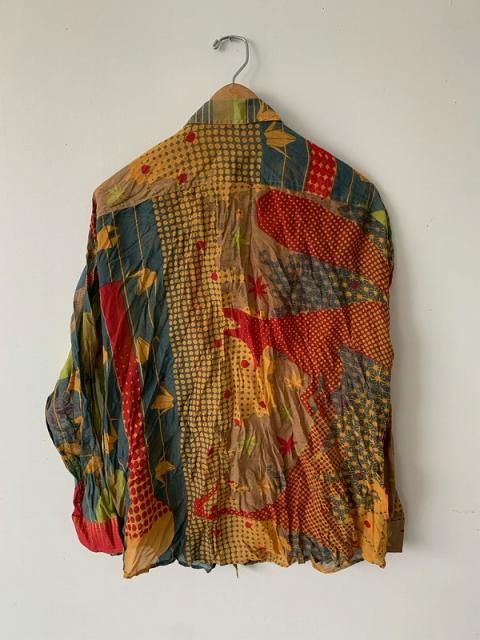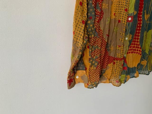 ストール柄を使用し、シャツに仕立てました。 シルクコットンの上品な素材感をそのままお楽しみください。