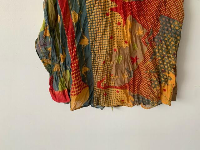 ストール柄を使用し、シャツに仕立てました。 シルクコットンの上品な素材感をそのままお楽しみください。