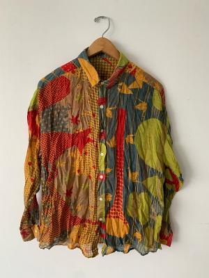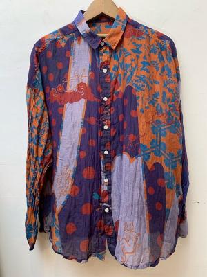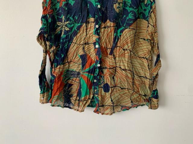 ストール柄を使用し、シャツに仕立てました。 シルクコットンの上品な素材感をそのままお楽しみください。