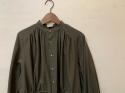 インド綿にカシミヤを5%混紡することで、ほんのりしっとりとした触感が加わったシャツ用ビエラ生地を使用し、襟元、背中、袖口、ウエストにたっぷりとギャザーを寄せたシャツドレスを製作しました。ウエストに共布スピンドルを通すことで、シルエットが大胆に変えられるのもこのシャツドレスの特徴です。通年着用できる、とても雰囲気のあるアイテムです。