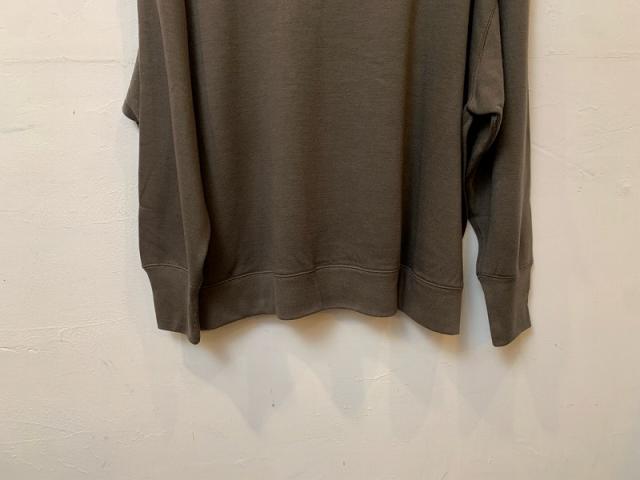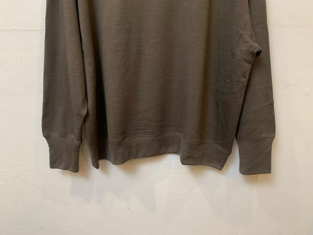 Super 120's (17.5マイクロン)というスーパーエクストラファインメリノといわれる超極細繊維の素材を超極細番手に梳いた梳毛糸を使用して、敢えて裏毛スウェット生地を編み上げました。[スウェットシャツ]と呼べる薄手のトレーナーです。ウールとは思えないほどのツヤスムースな肌触りが、comm. arch. ならでは。[次のレベル]のスウェットと言っても過言ではないアイテムに仕上がりました。