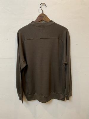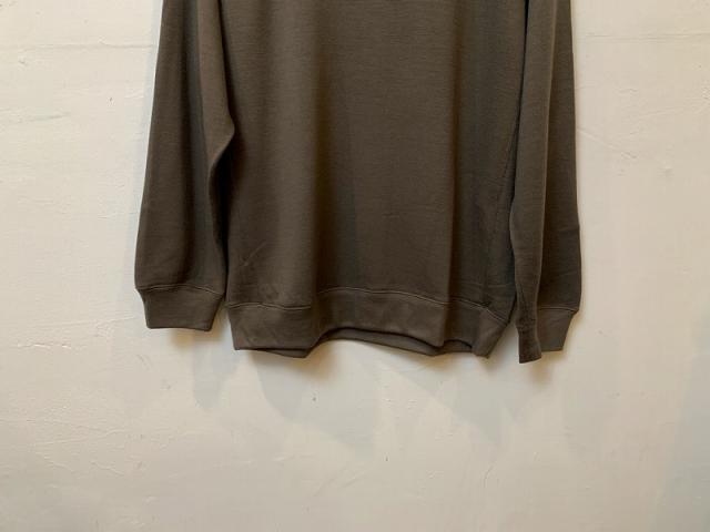 Super 120's (17.5マイクロン)というスーパーエクストラファインメリノといわれる超極細繊維の素材を超極細番手に梳いた梳毛糸を使用して、敢えて裏毛スウェット生地を編み上げました。[スウェットシャツ]と呼べる薄手のトレーナーです。ウールとは思えないほどのツヤスムースな肌触りが、comm. arch. ならでは。[次のレベル]のスウェットと言っても過言ではないアイテムに仕上がりました。