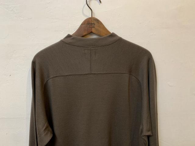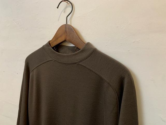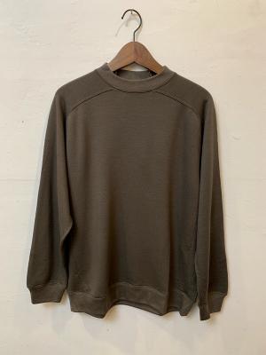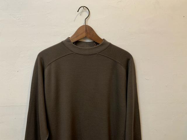 Super 120's (17.5マイクロン)というスーパーエクストラファインメリノといわれる超極細繊維の素材を超極細番手に梳いた梳毛糸を使用して、敢えて裏毛スウェット生地を編み上げました。[スウェットシャツ]と呼べる薄手のトレーナーです。ウールとは思えないほどのツヤスムースな肌触りが、comm. arch. ならでは。[次のレベル]のスウェットと言っても過言ではないアイテムに仕上がりました。