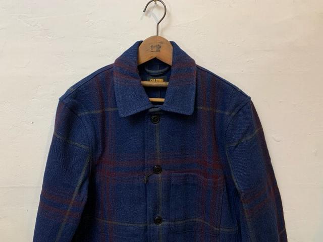 C.O.Fによる、コットンウール素材のタータンチェックのジャケット。マルチポケットのディテールとボタンダウンフロントが特徴で、美しいインディゴに仕上がっています。この秋冬に季節感を演出できるジャケットです。