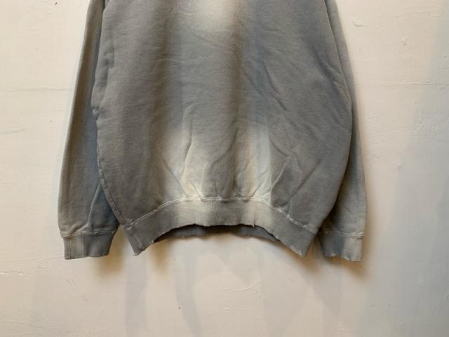 ムラ染めが特徴のスウェットシャツ。初秋からちょうどいい厚みの10オンスの裏毛をスウェットに仕立て、製品染めとダメージ加工によりヴィンテージライクな雰囲気に仕上げています。ベーシックなシルエットでデニムと好相性!色違いで欲しくなるような幅広いカラー展開とスタイリングに映える発色で、一枚でも様になるアイテムです。
