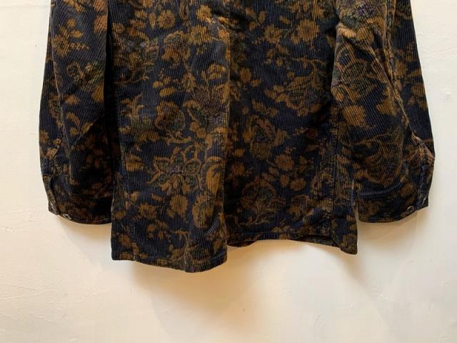 クラシカルな雰囲気のコーデュロイカバーオール。カジュアルな印象のコーデュロイ素材に同色系のボタニカル柄プリントを入れることで、印象的で深みのある雰囲気に仕上げています。