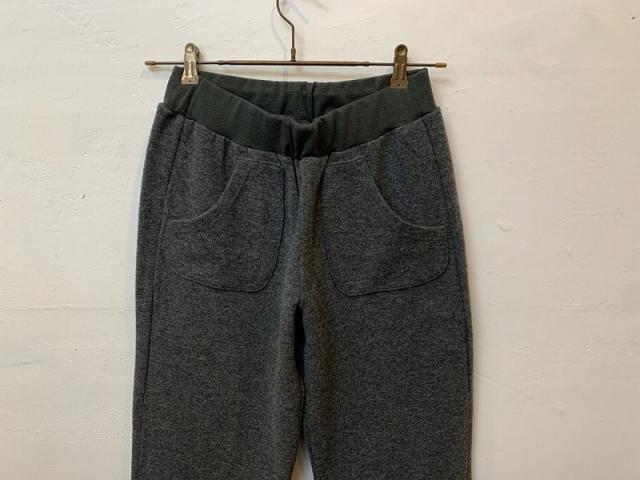 表側を南米産ウールをメインに、裏側をインド綿をメインにして接結させたダブルファイスのカットソー生地を使用して、comm. arch. ではとても珍しい、スウェットパンツを製作しました。