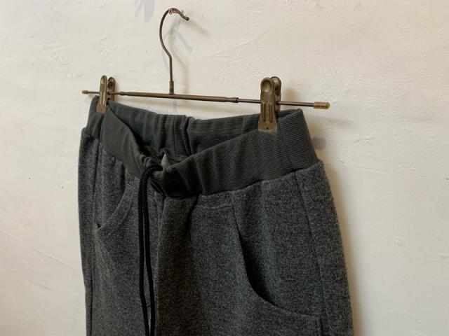 表側を南米産ウールをメインに、裏側をインド綿をメインにして接結させたダブルファイスのカットソー生地を使用して、comm. arch. ではとても珍しい、スウェットパンツを製作しました。
