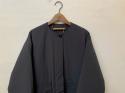 表面にシワ加工を施しており、シンプルながらも雰囲気のある中綿ノーカラーコートに仕上げました。