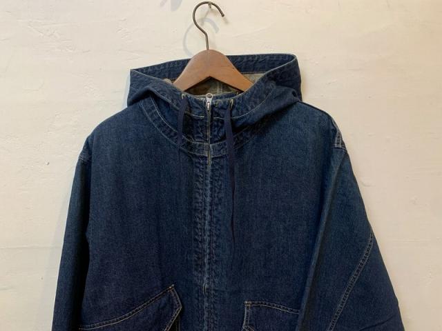 デニム素材のジップアップパーカー。程よい肉感で、洗いをかけた柔らかい風合いです。ミリタリーのディティールをベースにしたメンズライクなデザインですが、幅広いボトムやワンピースにもに合わせやすいように、少しショート丈のラフなシルエットに仕上げています。