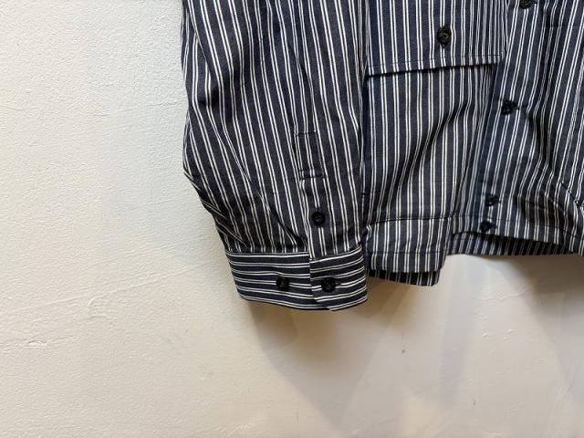 ドレス系のクラシックですっきりとしたストライプ素材を使用したバルスタージャケットです。ありそうでない絶妙なバランスのアイテムとして仕上がっています。